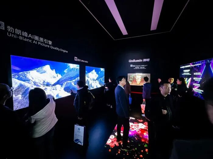 不仅是LED的创新,这是洲明一系列新品的主要特点之一。再例如,Unatural纹理屏的纹理设计、处理、集成与材料工艺,不是LED显示的核心内容;Upanel AM0.6-T透明屏基于TFT基板的AM COG产品,洲明科技进入了基于玻璃基板主动驱动的新技术空间;勃朗峰AI画质引擎则将洲明在“画质处理”科技上的成果推向新高度……